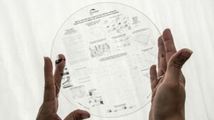 A sapphire disk is also a very good candidate for thisobjective: it can contain the equivalent of 10,000 sheets of A4 paper, completely transparent and colorless, and resistant to temperatures above 1600°C and immune to chemical attacks and scratches.