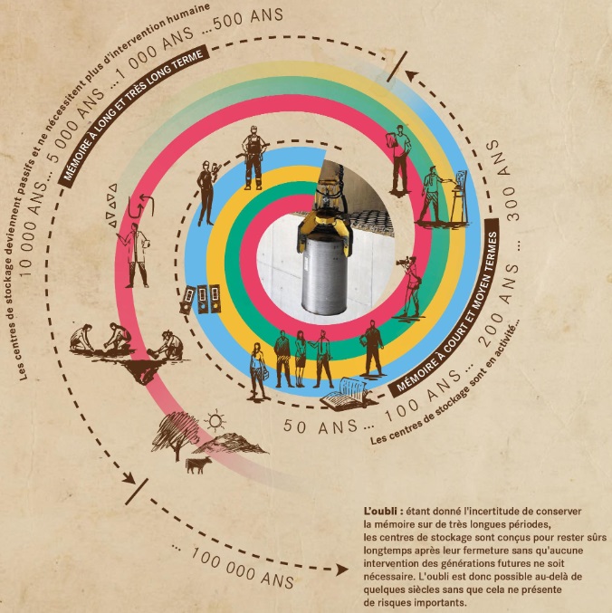 Beyond the technical and operational aspects of the Cigéo geological waste storage solution for radioactive waste, the issue of transmission to future generations arises. How to inform, in thousands of years, about the existence of these sensitive wastes under our (their) feet? The French National Agency for Radioactive Waste Management (Andra) is conducting multiple studies and research on the “Memory for Future Generations” program to cultivate collective consciousness and think about solutions for transmitting this knowledge in the future.