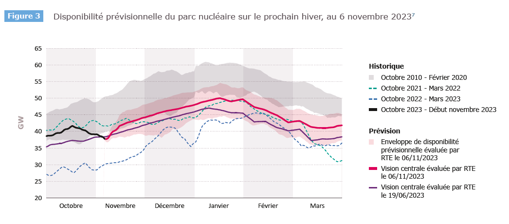The risk to the electrical network’s balance is considered very low for November and low for the rest of the winter. This is due to lower consumption than before the health crisis and better availability of production facilities, including those of our European neighbours. Electricity consumption in France continues to be 8-9% below pre-health crisis levels. RTE notes that electricity prices and the government’s sobriety plan “support the vision of very low electricity consumption in the coming months.”